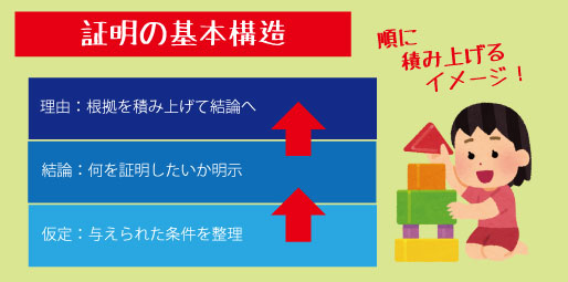 入試の証明では、「どうしてそうなるのか」を筋道立てて説明する力が求められます。
