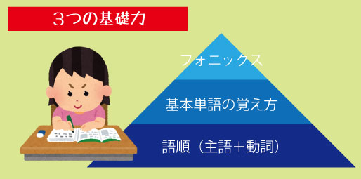 中学英語でつまずかないために必要な基礎は、次の3つに絞られます。