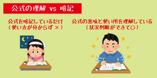 という悩みを抱えています。実はこの原因、「公式を暗記しているだけ」になってしまっていることが大きいのです。