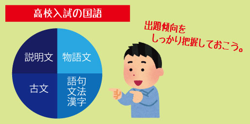 さらに、高校入試では説明的文章・物語文・古文・文法がバランス良く出題されますが、そのどれもが中学内容の延長線上で対策可能です。