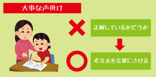 「早くしなさい」「計算合ってる?」ではなく、「考え方」に目を向けた声かけをすることで、子どもは少しずつ“理解する算数”へと変わっていきます。