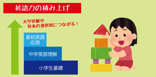 つまり、小学生のうちに英語の基礎と成功体験を積んでおくことが、将来の英語力を左右すると言っても過言ではありません。