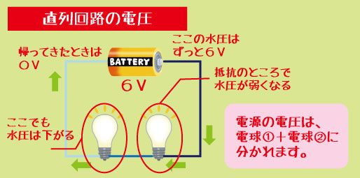 直列回路では「電流が同じ・電圧が分かれる」