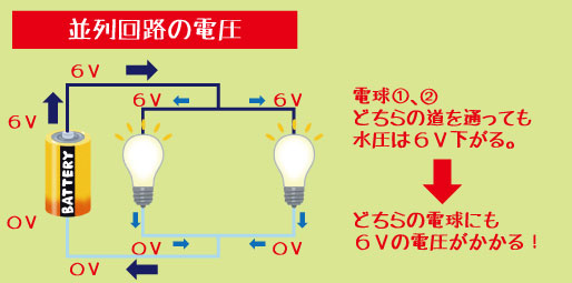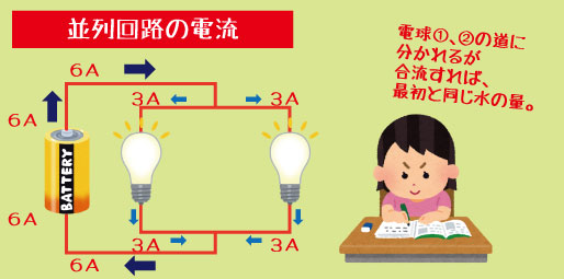 並列回路では「電圧が同じ・電流が分かれる」